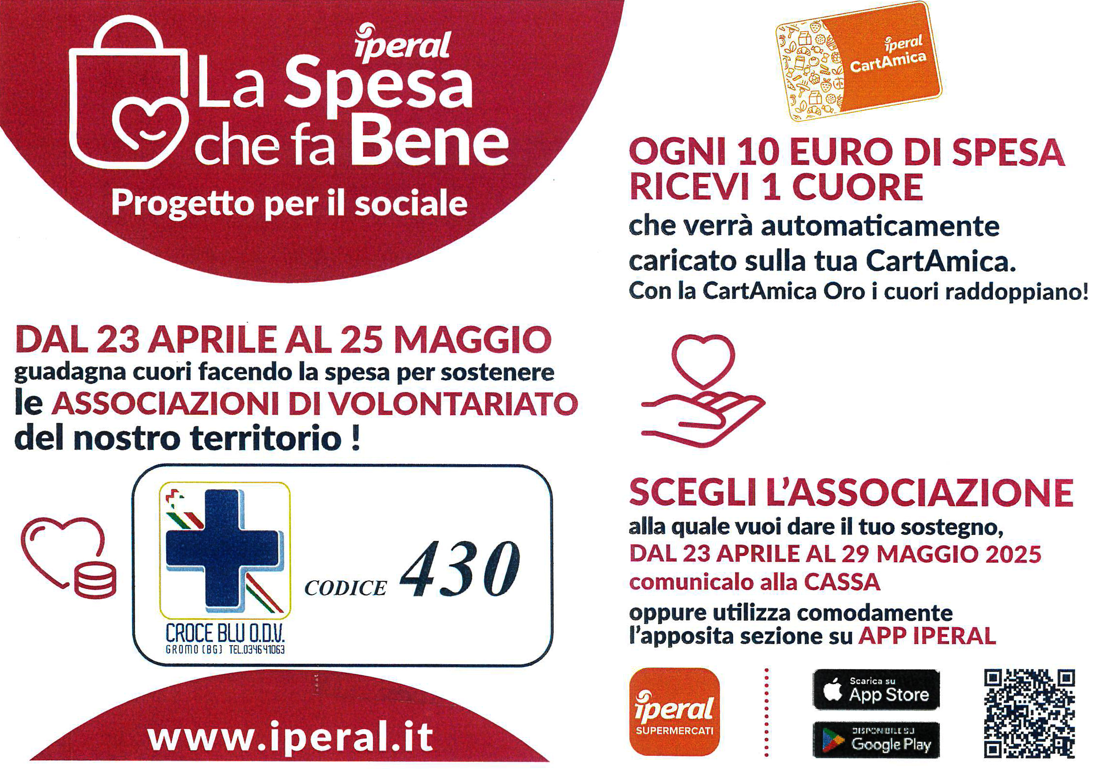 Dal 23 Aprile al 25 Maggio guadagna cuori facendo la spesa per sostenere le Associazioni di volontariato del nostro territorio!